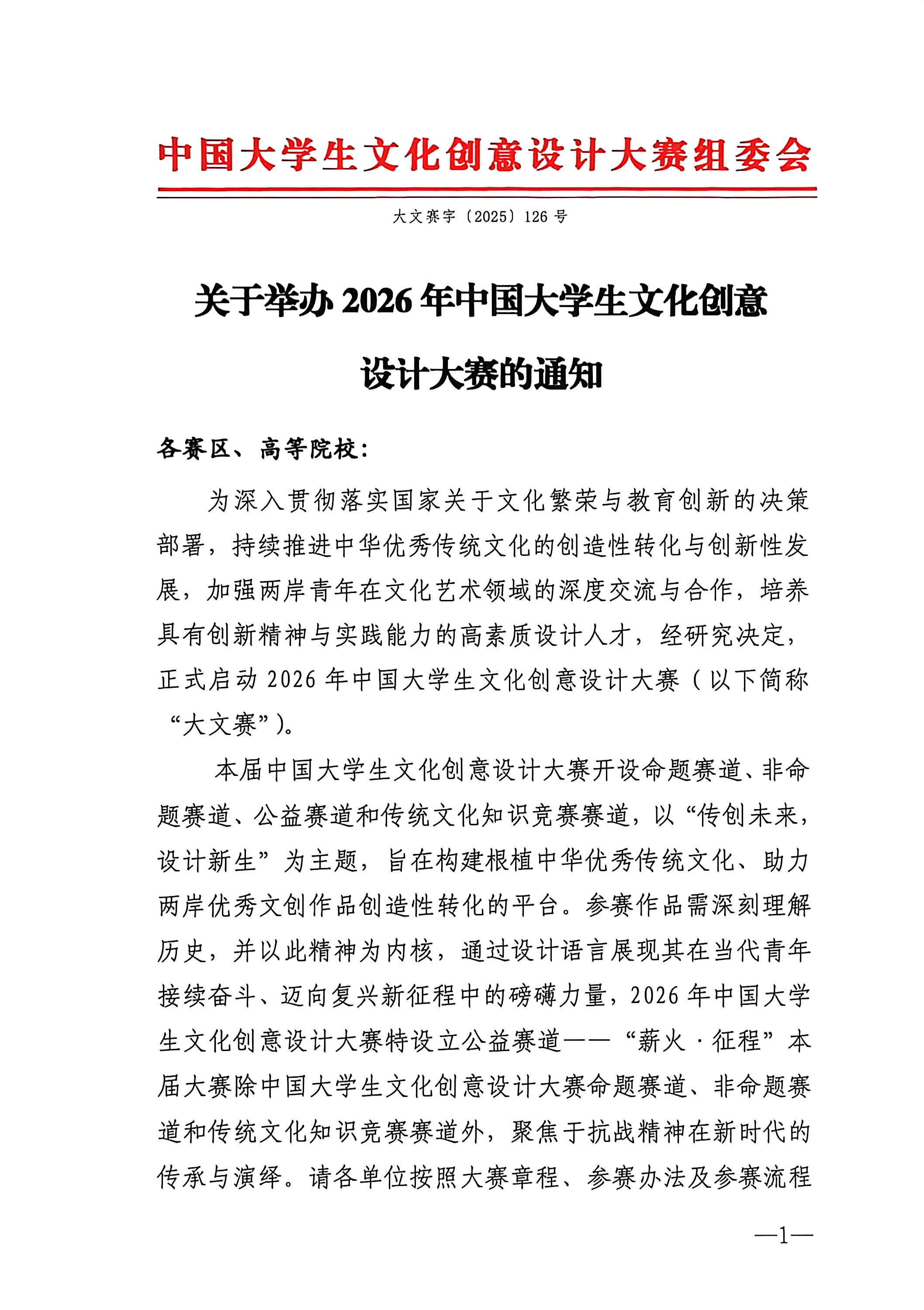 2026年中国大学生文化创意设计大赛——两岸高校艺术设计展,面向中国大陆、港澳台、国际赛区进行赛事征稿。